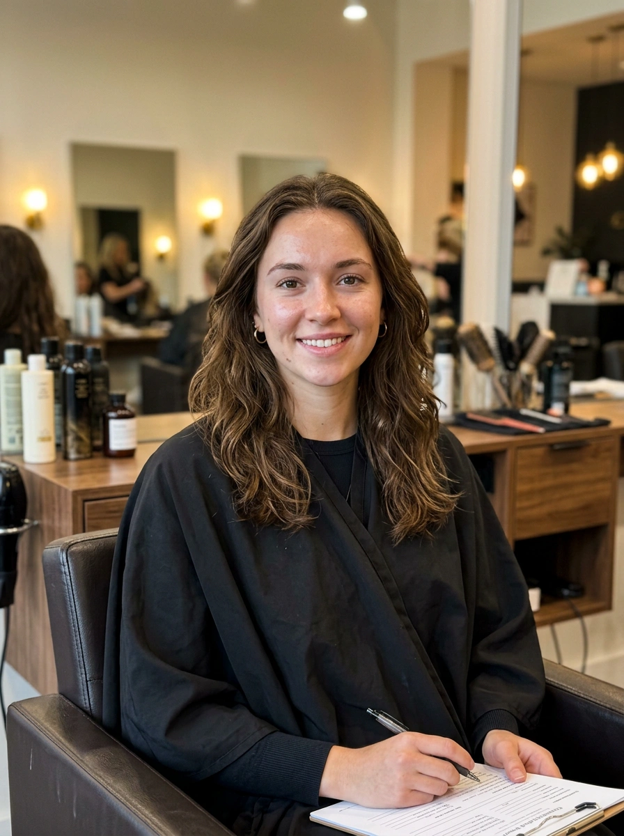 A live color consultation that shows the same client with warmer copper dimension.